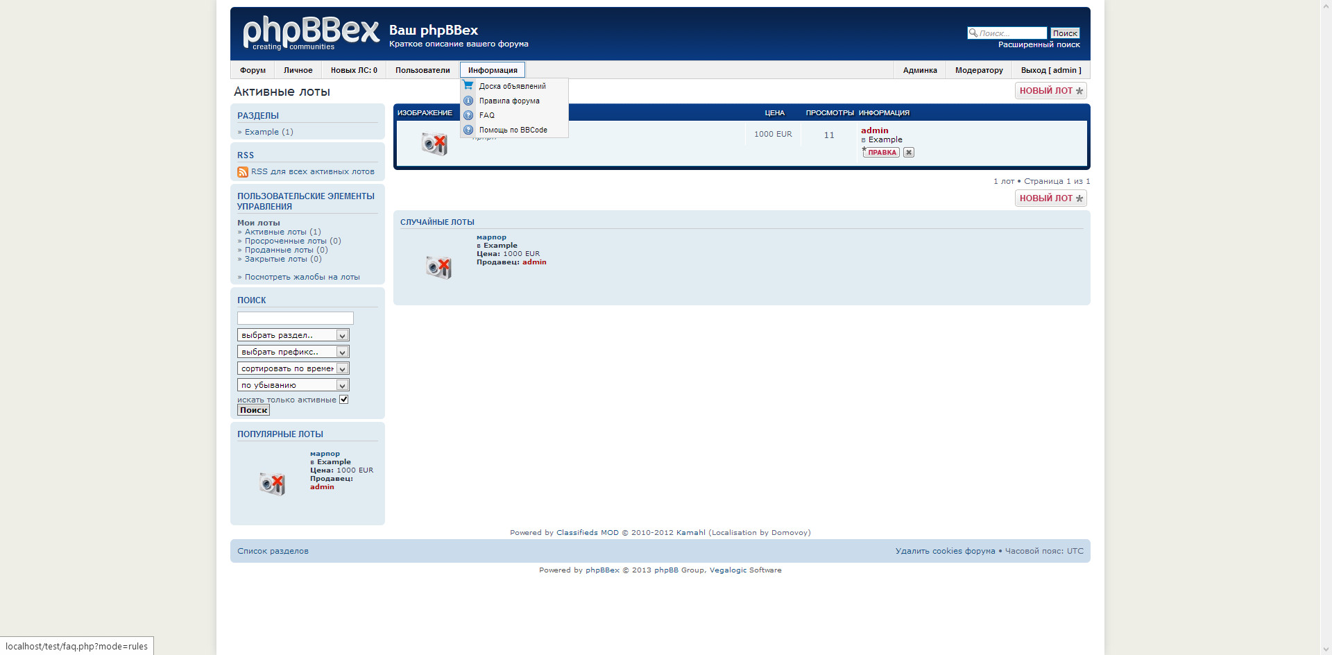 Список разделов phpBBex 1.x (поддерживается) Мастерская 1.x