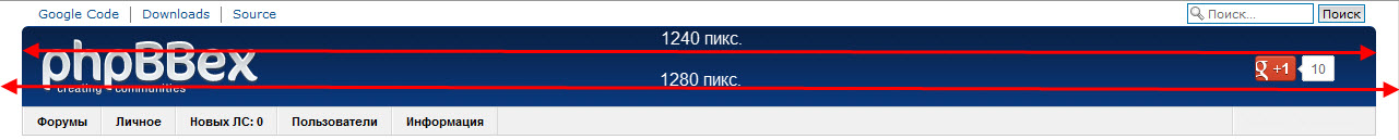Ширина вашего рисунка расчитывается просто: От ширины форума отнимайте 40 пикселей (20 справа и 20 слева). То есть, если вы выбрали ширину в 1400 пикс., то ширина вашего рисунка должна быть 1360 пикс. Но я буду использовать пример с шириной форума в 1280 пикс.