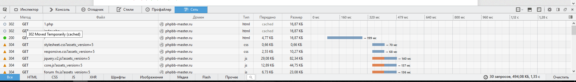Пока я вижу, что отдаётся 302, значит, phpBB не при делах.