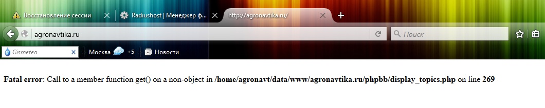 Сейчас: страница то открывается, то опять сообщает об ошибке..
