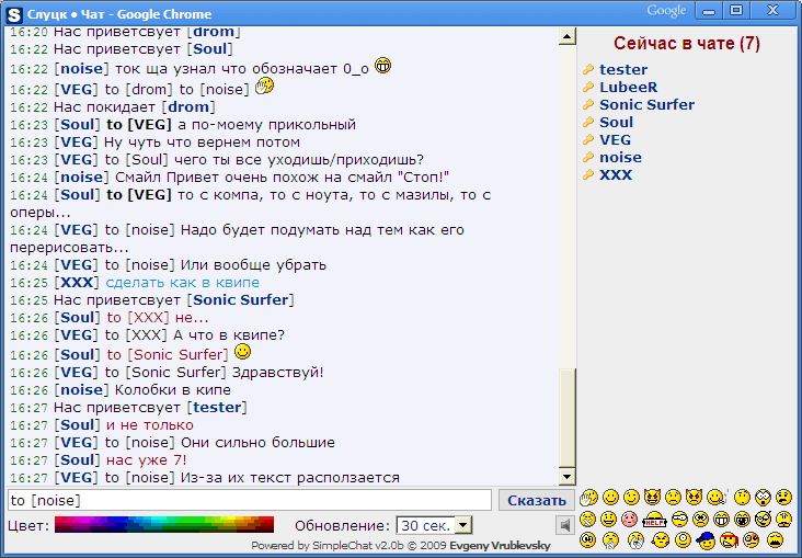 VEG:Если вам понравился этот чат, вы сделали какие-то модификации, или просто установили его на свой форум — обязательно напишите об этом здесь