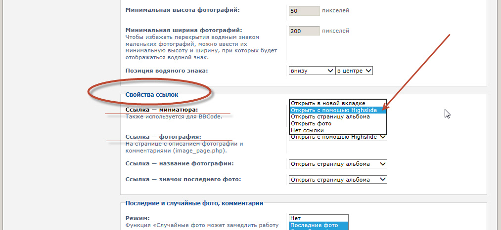 4) В Админке (Модули/Галерея/Настройка галереи/Свойства ссылок) выбрать этот плагин. (Я выбираю его только в первых двух пунктах).