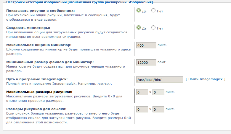 Настройки на скриншоте, Превьюшки создаются только на вложения, а не на картинки, которые прописываются по URL (почему именно такой способ я уже писал)Стандартные настройки при размещении изображений "создавать миниатюры" не подходят? Вроде бы всё это есть в админке и легко настраивается.