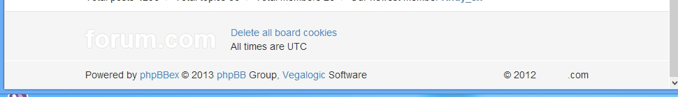 <div id="phpbbex">Powered by <a target="_blank" href="http://phpbbex.com/">phpBBex</a> © 2013 <a target="_blank" href="http://phpbb.com/">phpBB</a> Group, <a target="_blank" href="http://vegalogic.com/">Vegalogic</a> Software</div>