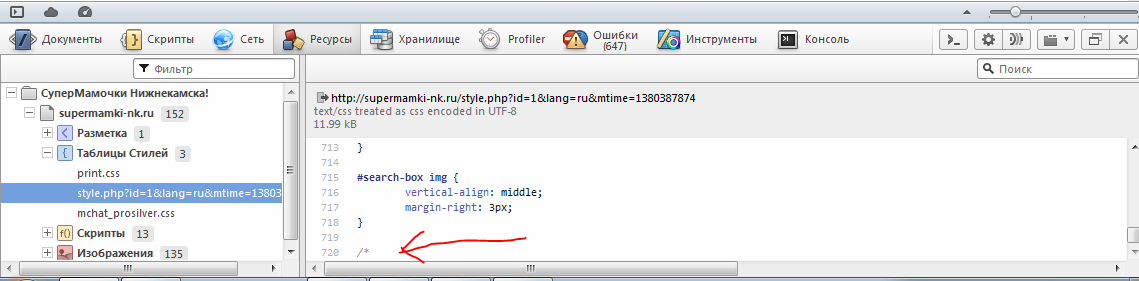 Алексей:Хотя нет, не всегда прерывается на 720 строке, иногда на 723, и бывает, что на 3514, 3960 и т.д. Похоже от содержимого файлов css это не зависит.