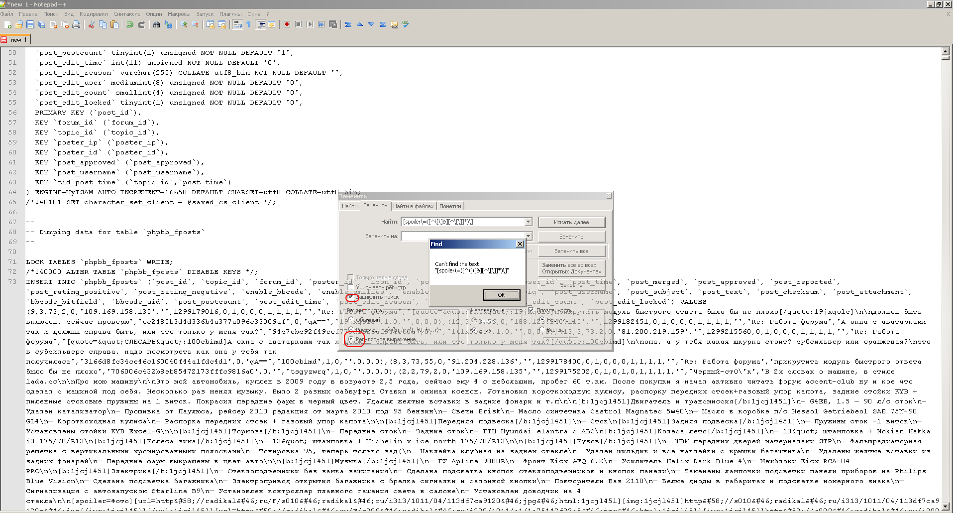 VEG:Внимательно читайте инструкции. Я приводил другую строку замены. Также лучше использовать последнюю версию Notepad++ — я тестировал на ней.