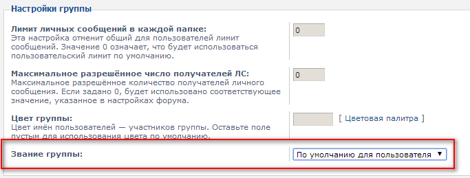 Затем в настройке группы выбираете звание из списка.