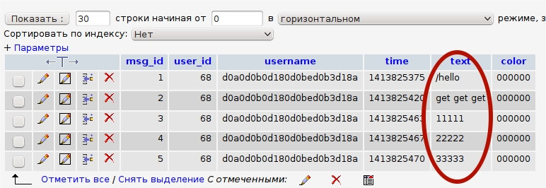 6. Посмотрел в phpmyadmin - сообщения записались в базу. (файл 2 во вложении)