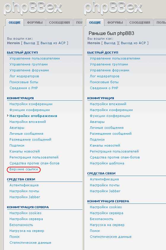 Heroin:к примеру в админке нет пункта Верхние ссылки