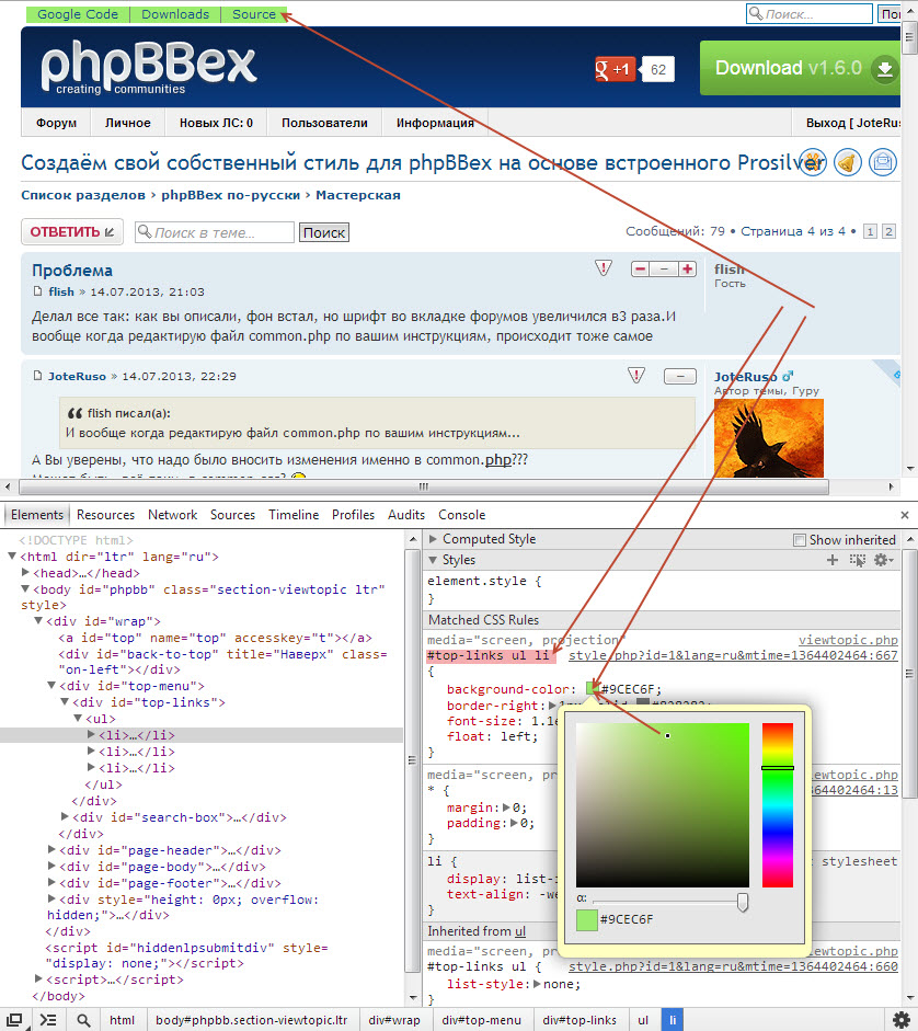 bilrost:Не подскажите ли, как в стиле на основе prosilver поменять цвет вот у этих надписей?