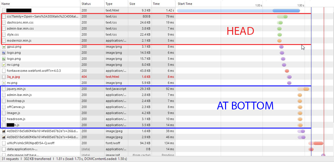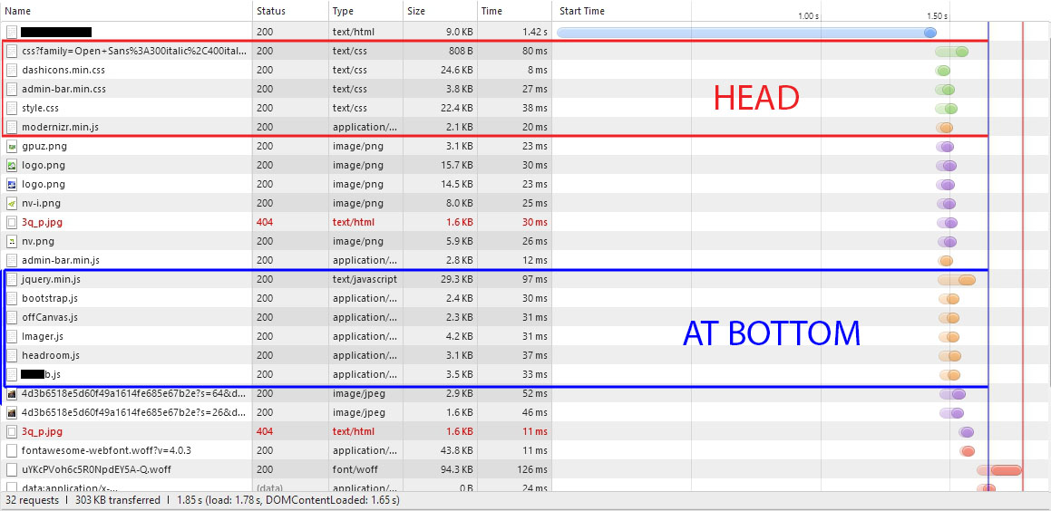 есть отдавать страницу частями через flush(), то "нижний" jQuery делает страницу медленней "верхнего". Примерно так: после хида ставится flush(), что позволяет браузеру получить содержимое хида и начать загружать, в то время, как остальной контент (боди) может быть еще даже не получен браузером.