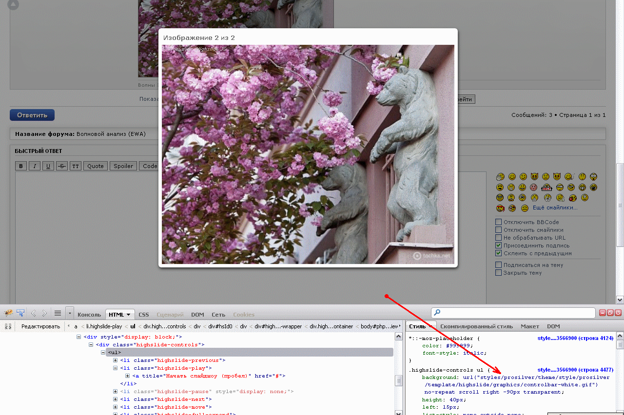 Firebug говорит мол путь неправильный к изображению,как правильно прописать путь? сами изображения лежат(на локалке) "forum.ru\www\styles\prosilver\template\highslide\graphics".