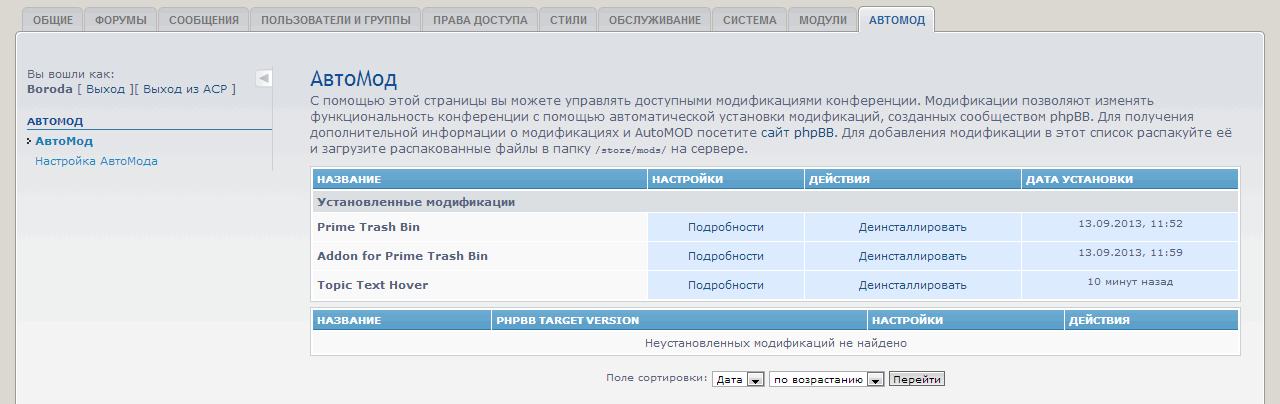 Boroda:P.S.S. Да, а что нужно исправить, чтобы уже установленный мод правильно удалялся автомодом?