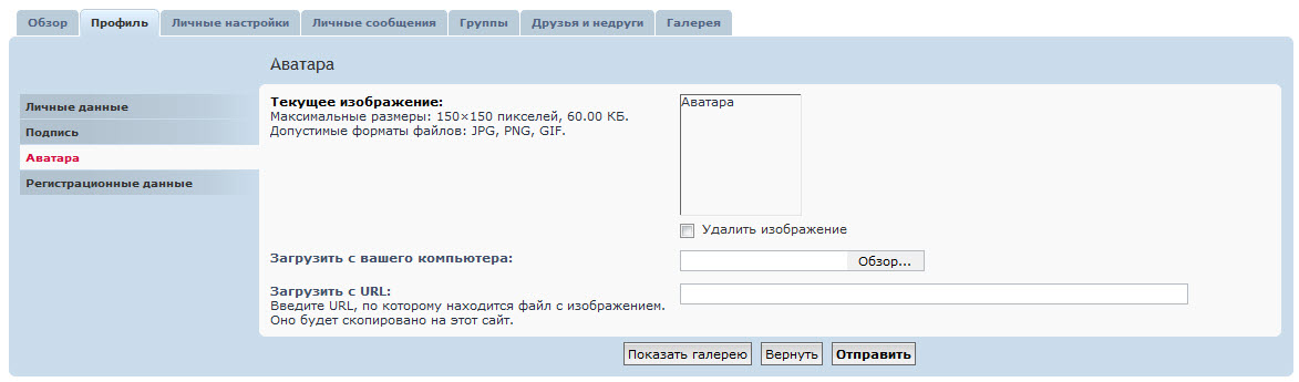 cektopa, JoteRuso, как понимаю, у вас почему-то не работают все варианты. Проверьте, есть ли права на запись в каталог с аватарами. Если есть, дайте мне, пожалуйста, ссылку на форум с проблемой, а также учётные данные тестового пользователя с обычными правами. Я попробую загрузить аватару со своего компьютера или по удалённой ссылке и посмотрю что у вас происходит.