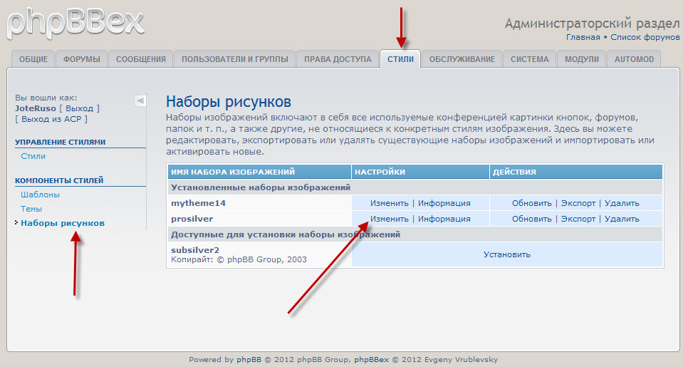 Список разделов phpBBex 1.x (поддерживается) Поддержка 1.x