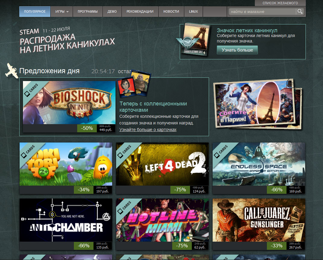 Если кто не в курсе, то сообщаю, что началась летняя распродажа в Стиме, которая будет идти до 22 июля включительно! :clap: