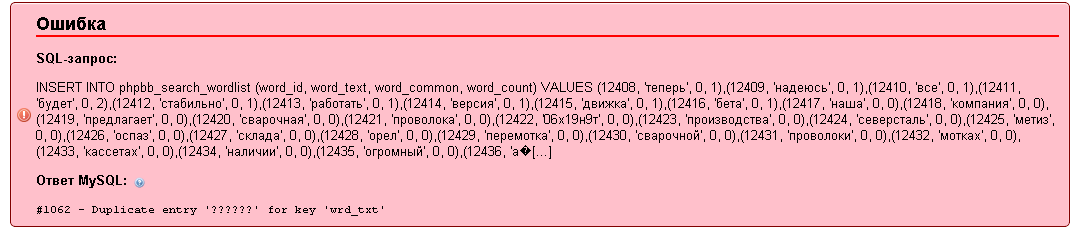процесс запустился, но остановился на таблице phpbb_search_wordlist