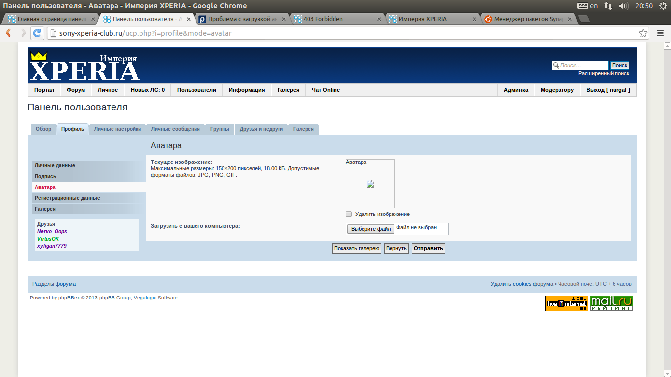 Права на папку upload запись стоит, при том файлы в папку загружаются, но как аватарки у пользователя не отображаются, а если переходить по пути к аватарке в строке браузера то пишет ошибка 404