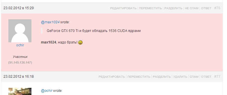 Администратору остается рассмотреть промаркированные сообщения.