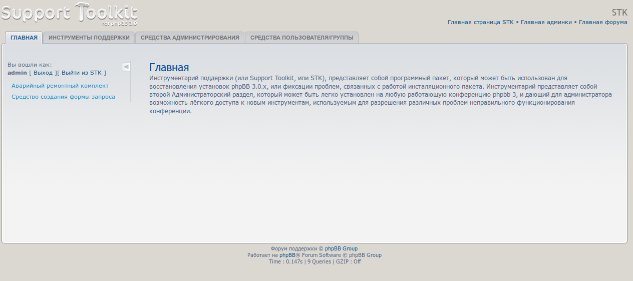 В phpBBex нет локализации STK, поскольку качество существующего перевода было очень низким. Нужно будет посмотреть, может стало лучше уже. В принципе, инструмент нужен в крайних случаях, и локализация там в принципе не обязательна.