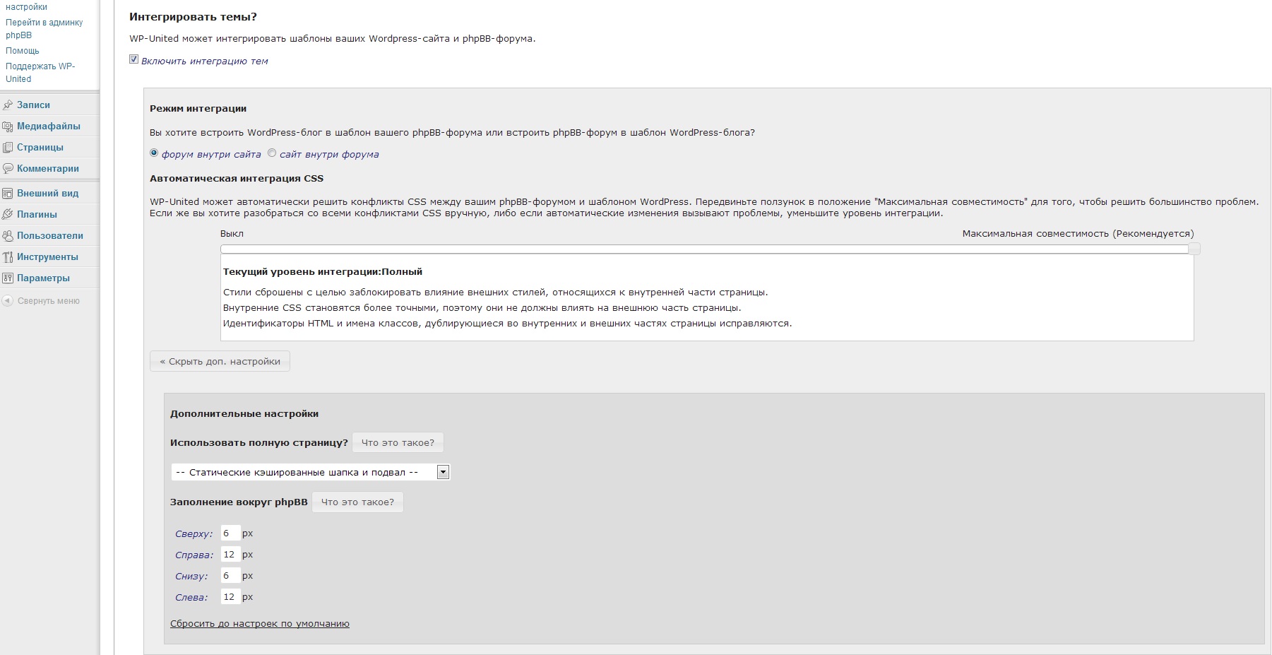 WP-UNITED (Интеграция с Wordpress)