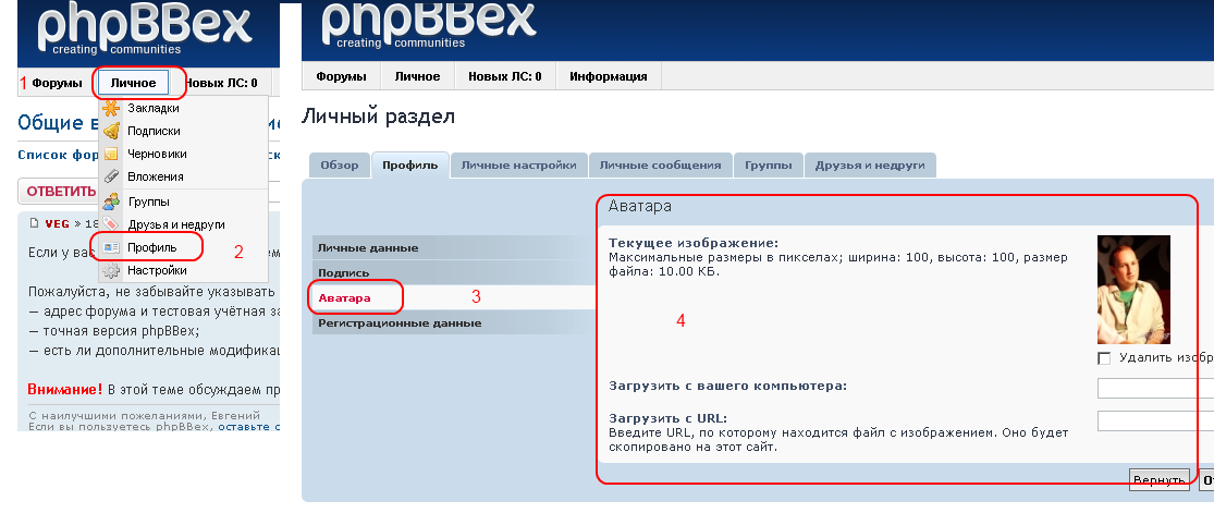 JoteRuso:Вам же Heroin чуть выше картинку показал 1 Личное2 Профиль3 Аватара4 Загрузить с (вашего компьютера / с URL)