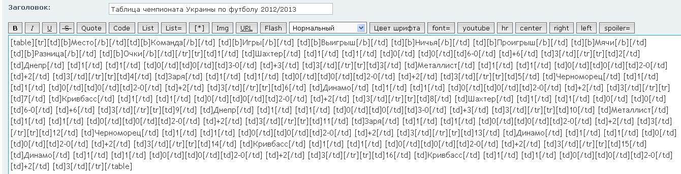 Таблица в сообщении