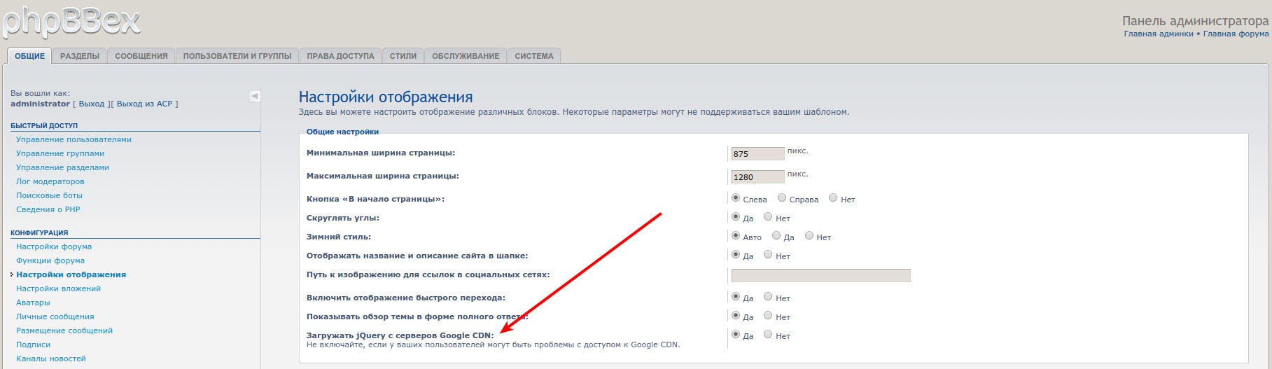 forum-33.ru , как вдруг в голове пронесся флешбэк, что то похожее и связанное с этой библиотекой я уже видел в админке phpBBex. И о чудо, нашел такую опцию: