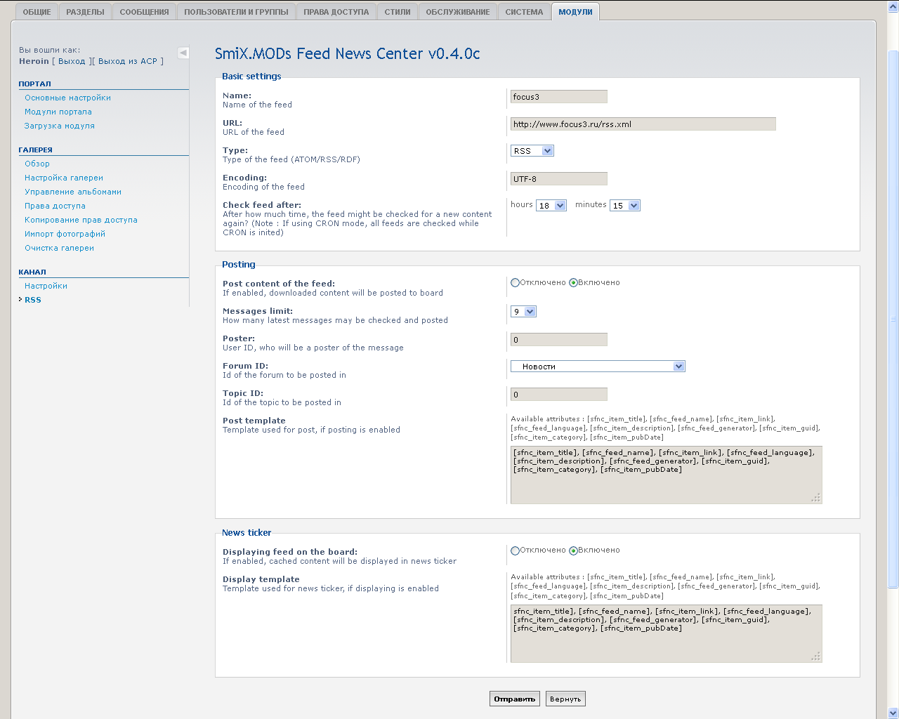 Для отображения новости у нас на форуме, в настройках мы выбираем что мы хотим видеть
