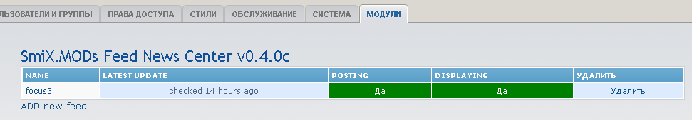 нажал ADD new feed