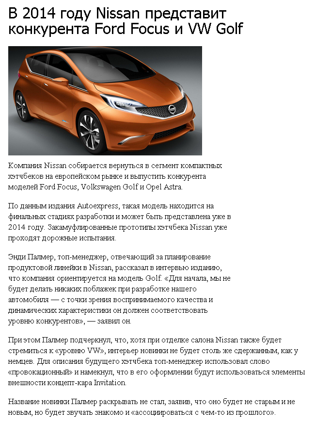 <description>При разработке компактного хэтчбека для европейского рынка Nissan ориентируется на качество VW Golf</description>