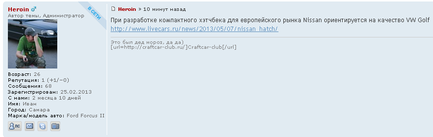 Вот какай результат я вижу на форуме