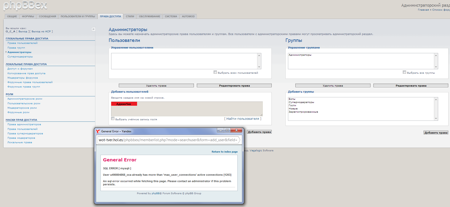 O_C_A:и вот ещё что сломалось на форуме, при выборе вкладки "пользователи и группы" в админке :(