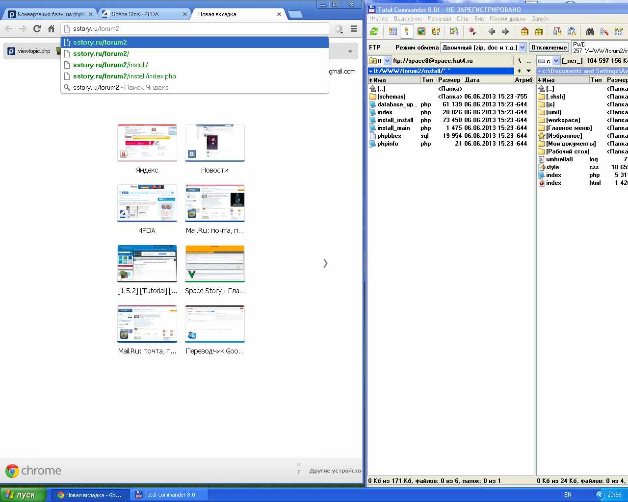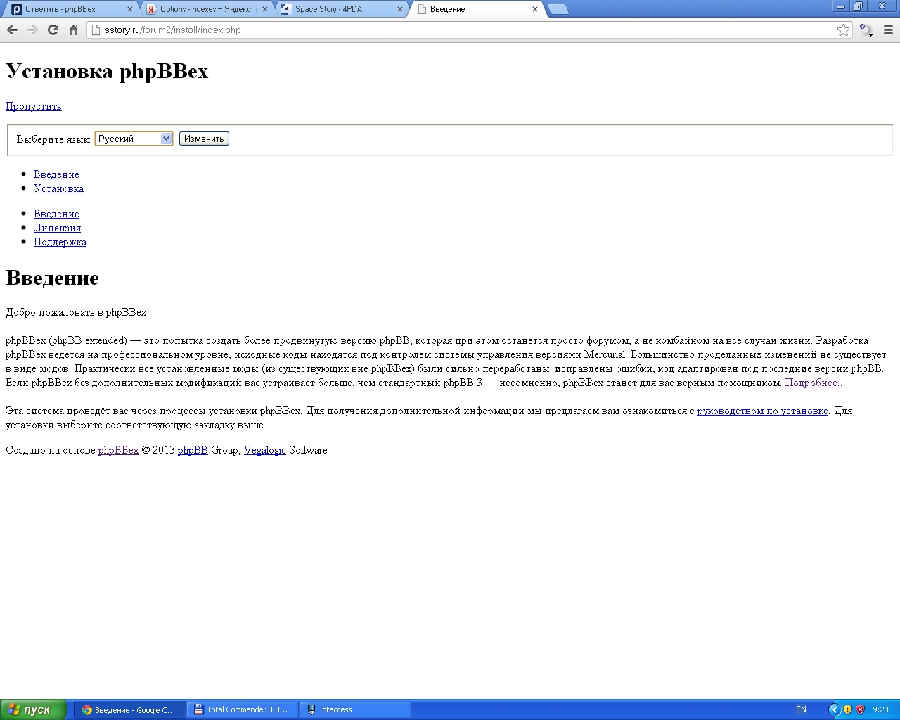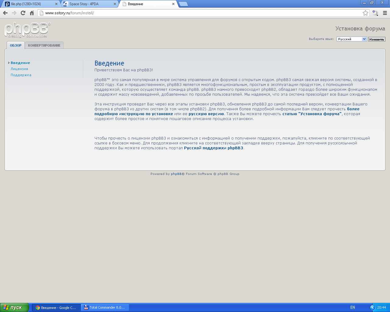 мои действия:распаковываю архив заливаю в корень сайта в папку forum. дальше ставлю права на файлы как на phpbb3 , далее ввожу в браузере мой_сайт/forum/instal/