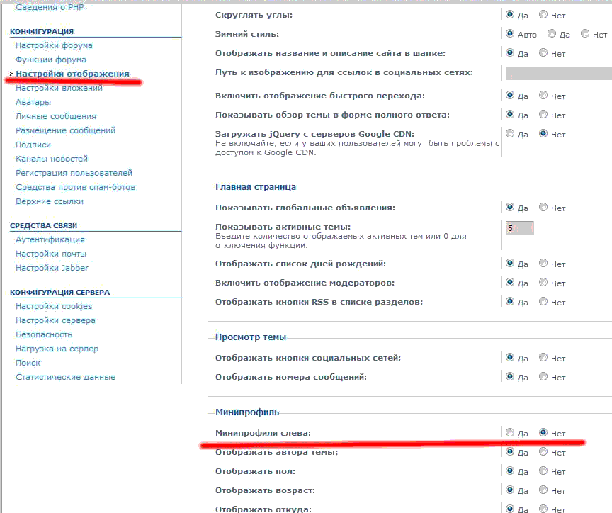 novaseo, Админка » Общие » Настройки отображения » Минипрофили слева » Да.