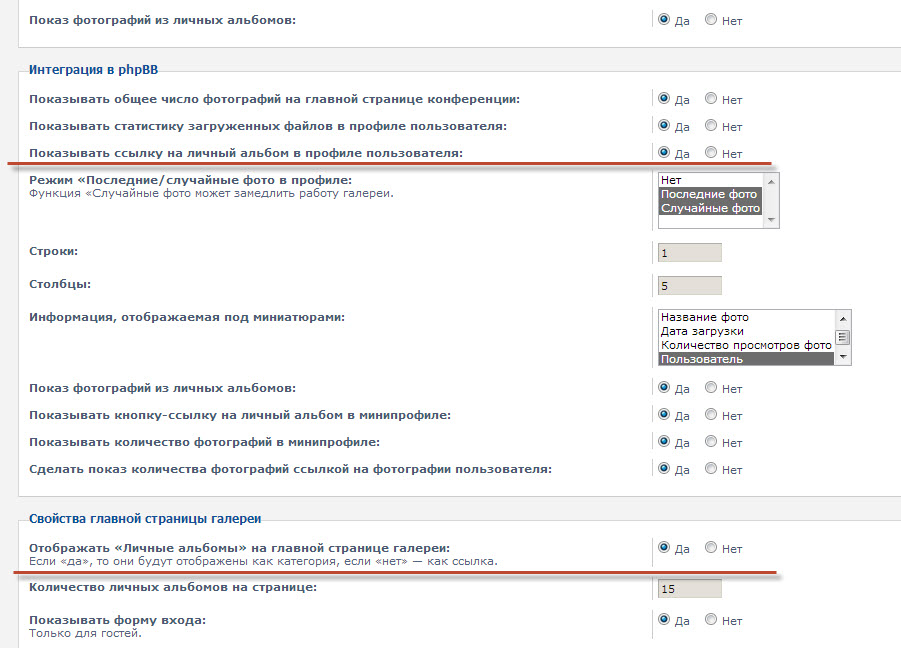 Помогите, если возможно. Проблема та же, что и у dimmka - нет создания альбомов в личном кабинете. Настройки прав и мода выставлены согласно вышеприведенным. Стоит сборка Expand версии 3.0.12, скачанная с офф сайта. Мод галереи изначально стоял, т.е. я устанавливала только ту часть, которая касалась шаблона (Milky way на основе subsilver). В админке мод виден. а вот в кабинетах нет. Подскажите, что еще проверить, плз?